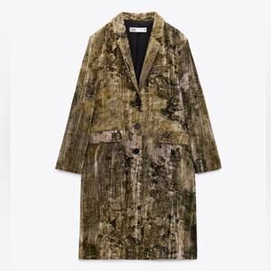 Zara Olive and Brown Tie Dye Velvet Coat