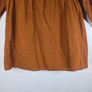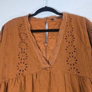 Zara Opemwork Eyelet Mini Dress Women Size Medium Brown Peasant Boho Hippie