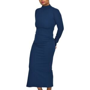 Zara Open Back Dress Blue Navy Long Sleeves Midi Column Straight Bodycon Small
