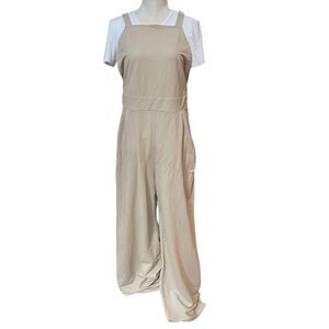 Zara Open Back Tie Full Body Long Jumpsuit in Light Tan Size: L