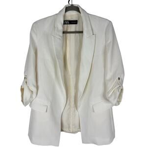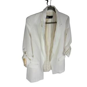 Zara Open Front Blazer Jacket Rolled Up Sleeve Career Chic Minimalist Ivory Sz S