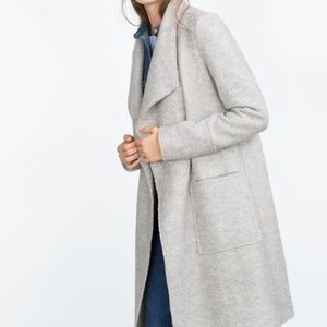 Zara Open Front Waterfall Wool Coat Grey Size XS