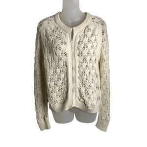 Zara Open Knit Crochet Cardigan Women's Long Sleeve Clasp Closure Cream Sz Large
