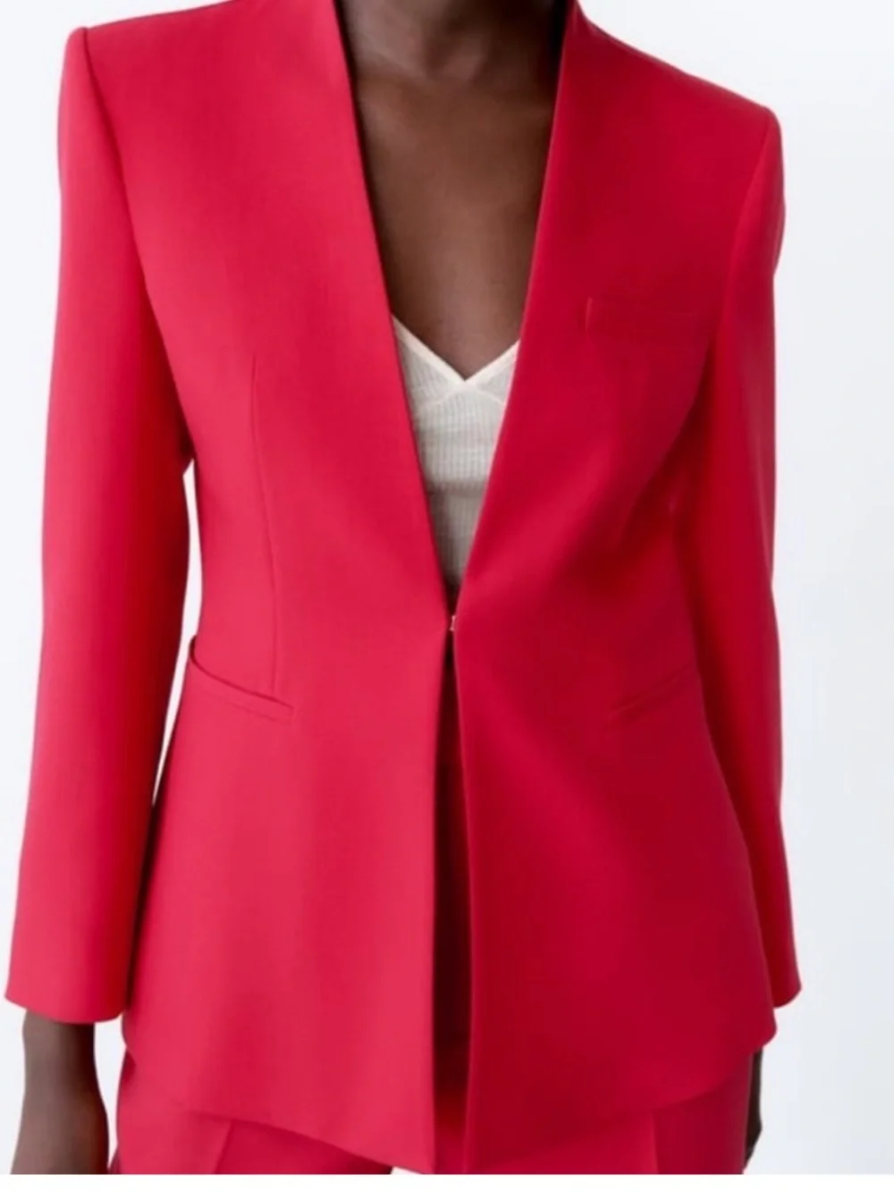 Zara Open-Front Raspberry Fitted Blazer Jacket