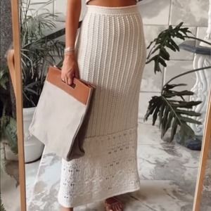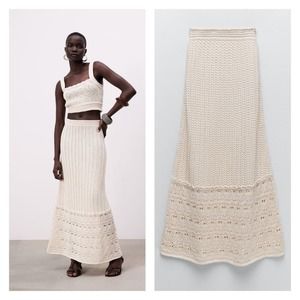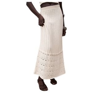 Zara Openwork High Waisted Knit Crocket Skirt in Ecru Size Medium NWT