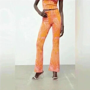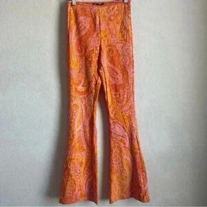 Zara Orange Pink Paisley Retro Hippie Flare Elastic Waist Pants Size S-NWT