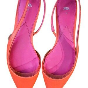 Zara Orange & Pink Pointed Toe Womens Slingback Flats Size 38