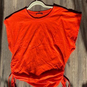 Attributes: Short Sleeve, Side Drawstrings (can crop it), Orange, Crew neck,