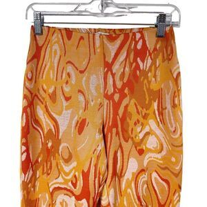 Zara Orange Swirl Retro Jacquard Knit Flare Pants Orange Womens Size S Small