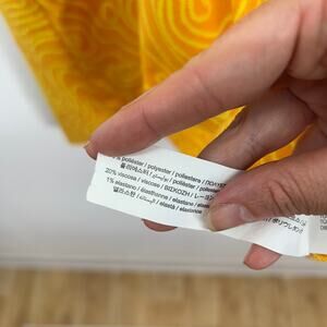 Add a pop of color to your wardrobe with this Zara knit midi skirt. Featuring a vibrant orange and yellow funky hippie print, this skirt is perfect for resort wear, vacations, or a day at the beach. The adjustable tie waist ensures a comfortable and flattering fit. Size Large.