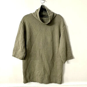 Zara Ottoman Short Sleeve Sage Green Ribbed Funnel Neck Sweater Size M GUC