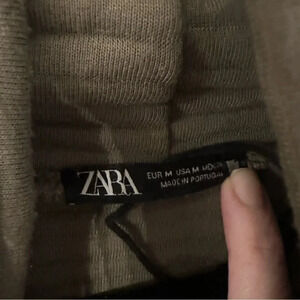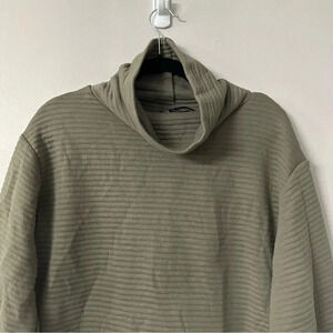 Zara Ottoman 3/4 Sleeve Sage Green Ribbed Funnel Neck Sweater Size M GUC