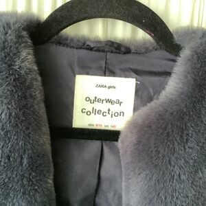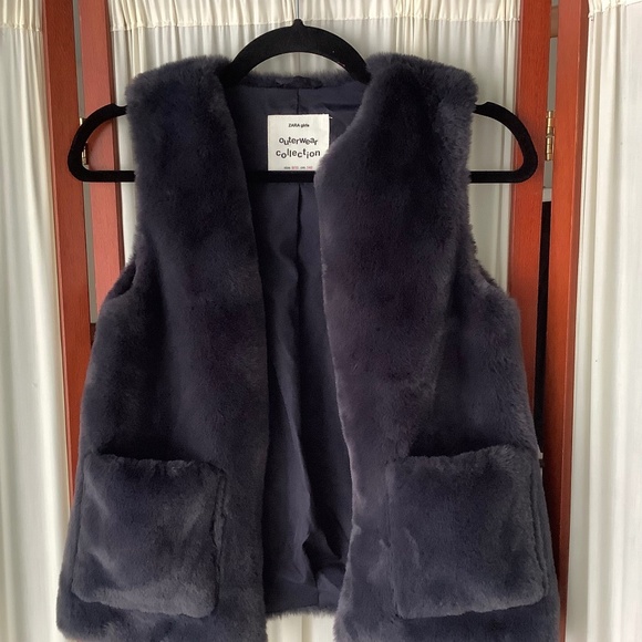 Zara Outerwear Collection girls faux fur vest in a deep dark blue with