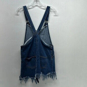 Zara Denim Mini Overall Dress Raw Hem Front Full Zip Sleeveless Blue Size Small