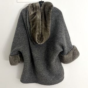 Zara Oversize Sweater Coat Wool with Faux fur hood