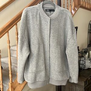 Zara Oversized Boucle Gray Bomber Jacket Small