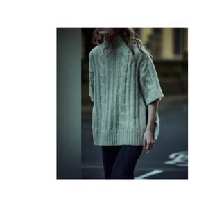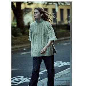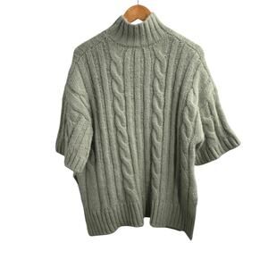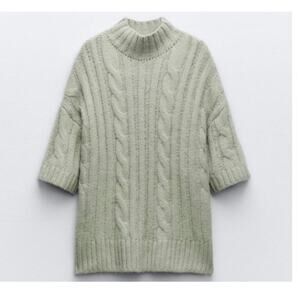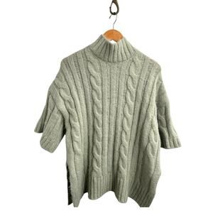 Zara Oversized Cable Knit Half Sleeve Sage Mock Neck Sweater Women's Large
