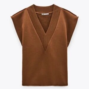 Zara Oversized Chocolate Brown Vest Sweatshirt Small