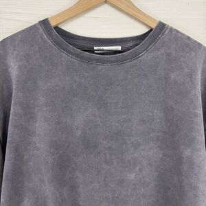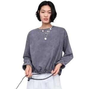 Zara Oversized Distressed Sweatshirt Women L Relaxed Grey Drawstring Crew Neck