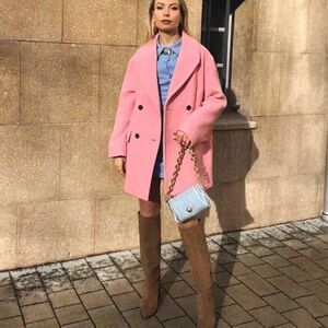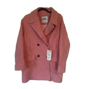 Zara Oversized Double-Breasted Coat Wool Blend Pink Size M NWT 2263/299
