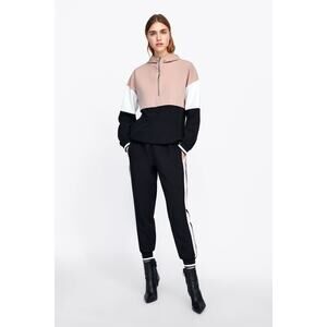 Zara Oversized Hoodie Lightweight Half Zip Jacket Small Funnel Neck Pouch Pocket