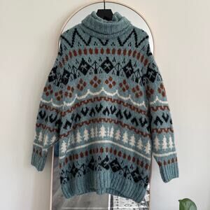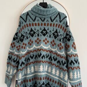 Zara Oversized Knit Jacquard Tree Turtleneck Sweater