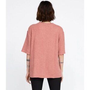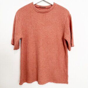 Zara Oversized Ribbed Textured Short Sleeve Raw Hem Shirt Top Blouse Size Small