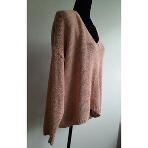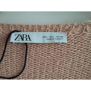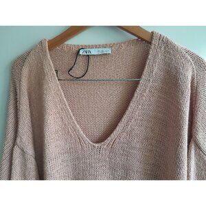 Zara Oversized Slouchy Comfy Crop Open Knit Sz Large V-Neck Sweater Dusty Rose