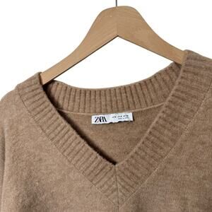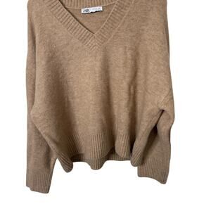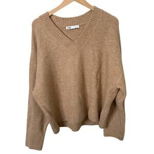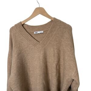 Zara Oversized Soft Knit Wool Blend V Neck Sweater Blogger Favorite Medium