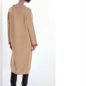 Zara Oversized Taupe Brown Knit Midi Dress, Polo Collar and Long sleeves Turn up cuffs, Approx measurements Pit to Pit 25",", Length 46".NWT