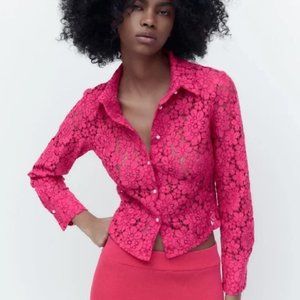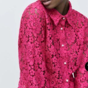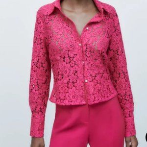 Zara PINK BARBIE Lace Shirt Fuchsia