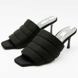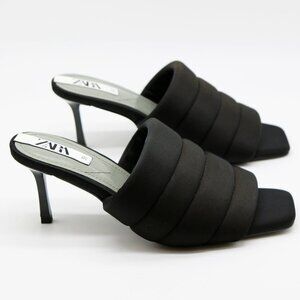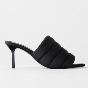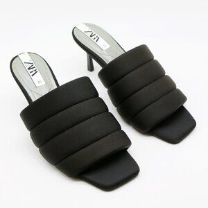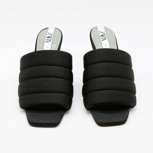 Zara Padded Quilted Slip On Slide Heel Mules Sandals 36 Black Square Toe Comfy