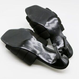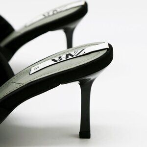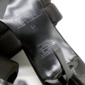 Zara Quilted Sandal Peep Toe Pump Heels Black Square Toe Slip On