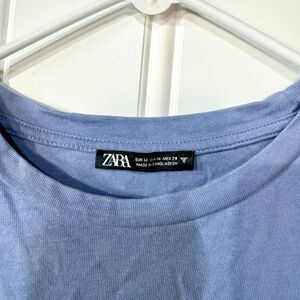 Zara Padded Shoulder Crewneck Cotton Blue Tunic Dress Size Medium