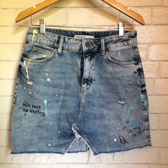 Zara Paint Splattered Denim Skirt
