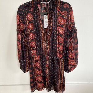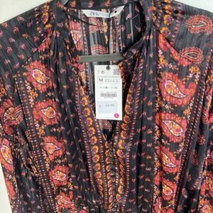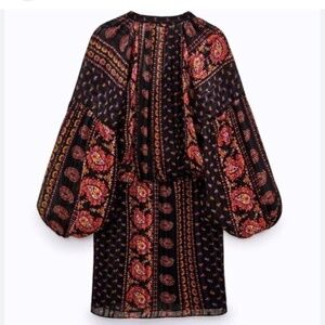 Zara Paisley Floral Print Blouson Mini Dress size M. NWT