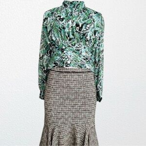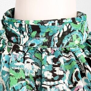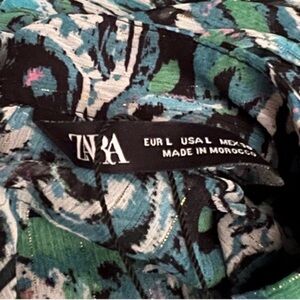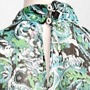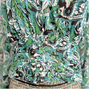 Zara Paisley Print High Neck Ruched Blouse Green + Multi SZ L