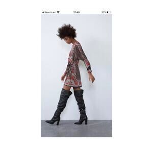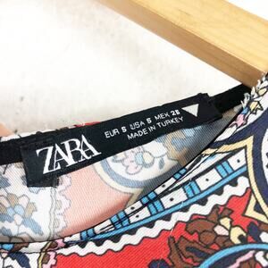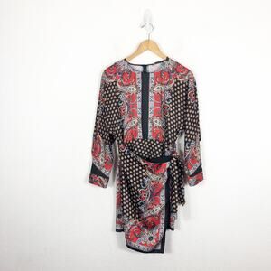 Zara Paisley Scarf Mix Print Satin Faux Wrap Mini Dress Small Boho Western