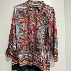 Worn only a few times. Silky paisley / patterned top in multi-color.