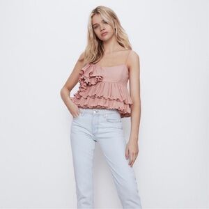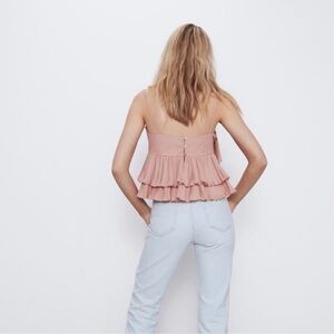 Asymmetrical sleeveless blouse with pleated layering in pale pink