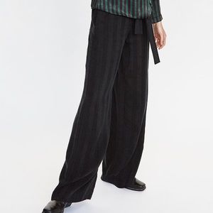 They are not pleated more of a flowey fit, has zipper. I’m 5’7 and even with 4 inch heels they are still long;