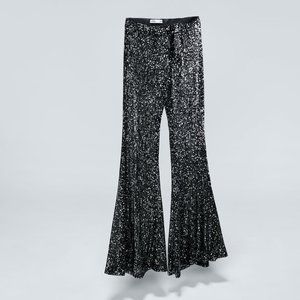 Brand new with tags. Bloggers favorite! Mid-rise trousers with flared legs. Featuring sequin appliqués, front zip, inside button and metal hook fastening. Measurements approx laying flat Waist XS 13.5", S 14.5" Rise 9" Inseam 34"