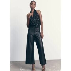 Tags: Zara , Pants , Faux Leather, Patch Pocket, Straight , comfort, stretch, casual, classic, lightweight, Wide Leg Pants