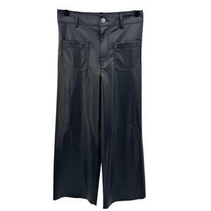 Zara Pants Faux Leather Patch Pocket Marine Straight Wide Leg Size 6 Black