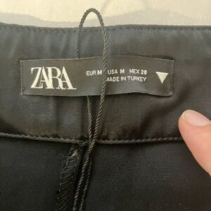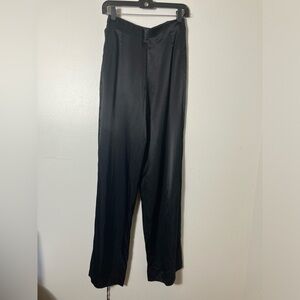 Zara Pants Sz M Black Wide Leg High Rise Side Zip Tie Boho Viscose Minimalist