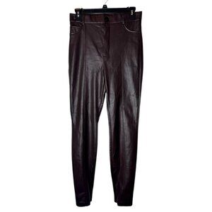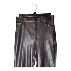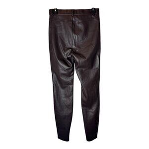 Zara Pants Women Medium Dark Brown Faux Leather High Rise Zipper Hem Skinny Leg
