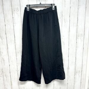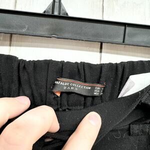 Zara Pants Women Size Small Linen Wide Leg Black High Waisted Trousers Tied