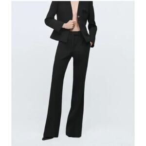 Zara Pants Womens 2 Solid Black Wide Leg Flare Trousers Mid Rise Career