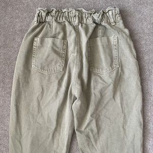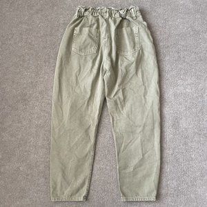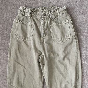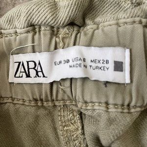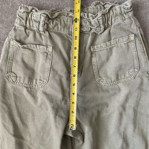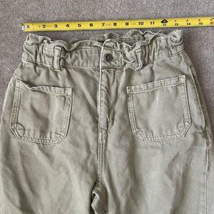 Zara Pants Womens 6 Beige Khaki High Rise Paperbag Cropped 24" Inseam Casual