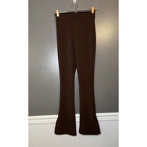 Zara Pants Womens Medium Brown Flare Slit Hem Stretch Pull On Polyester Blend